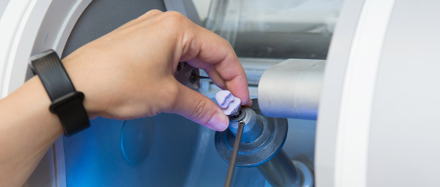Als Erstes wählt der Zahnarzt am Computer die ideale Form aus und überträgt diese Information an die Schleifeinheit. Innerhalb von nur einer Stunde entsteht dann aus einem kompakten Block der individuelle keramische Zahnersatz. Der Patient kann währenddessen jeden Schritt am Bildschirm verfolgen und behält immer die volle Kontrolle.